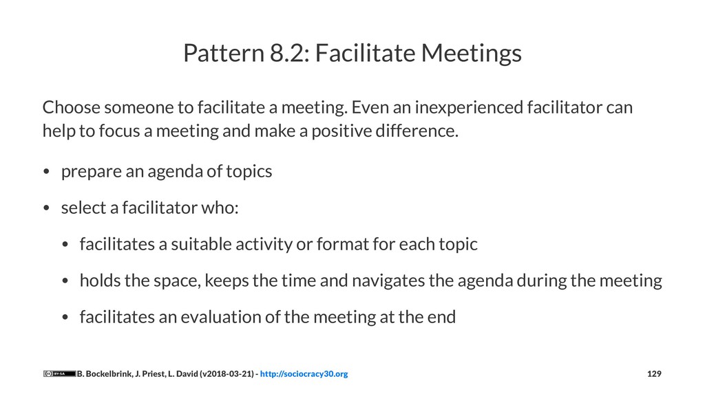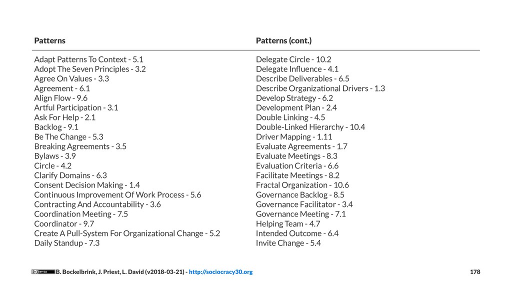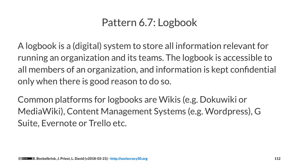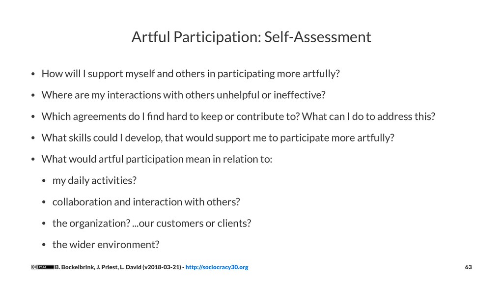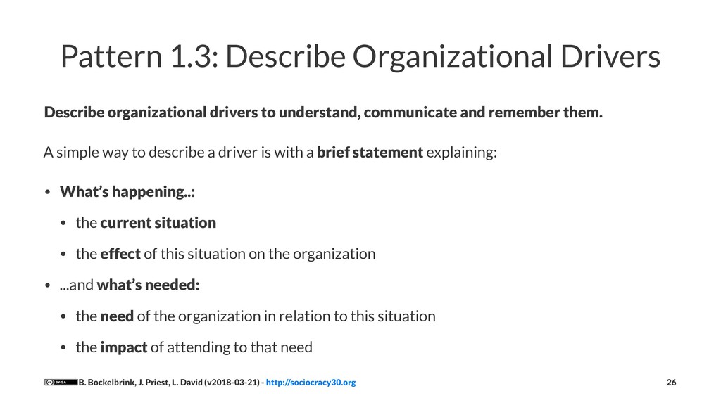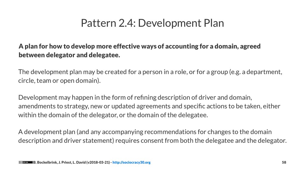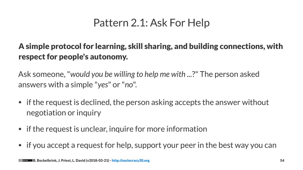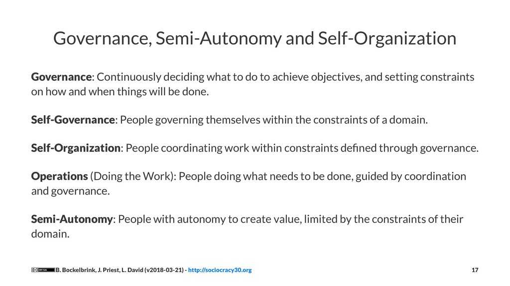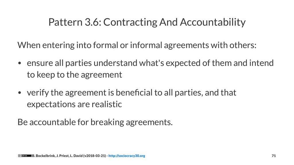 Sociocracy 3.0 (a.k.a. S3) - brings you an extensive collection of guidelines and practices (patterns) that have proven helpful for organizations for improving performance, alignment, fulfillment and wellbeing.