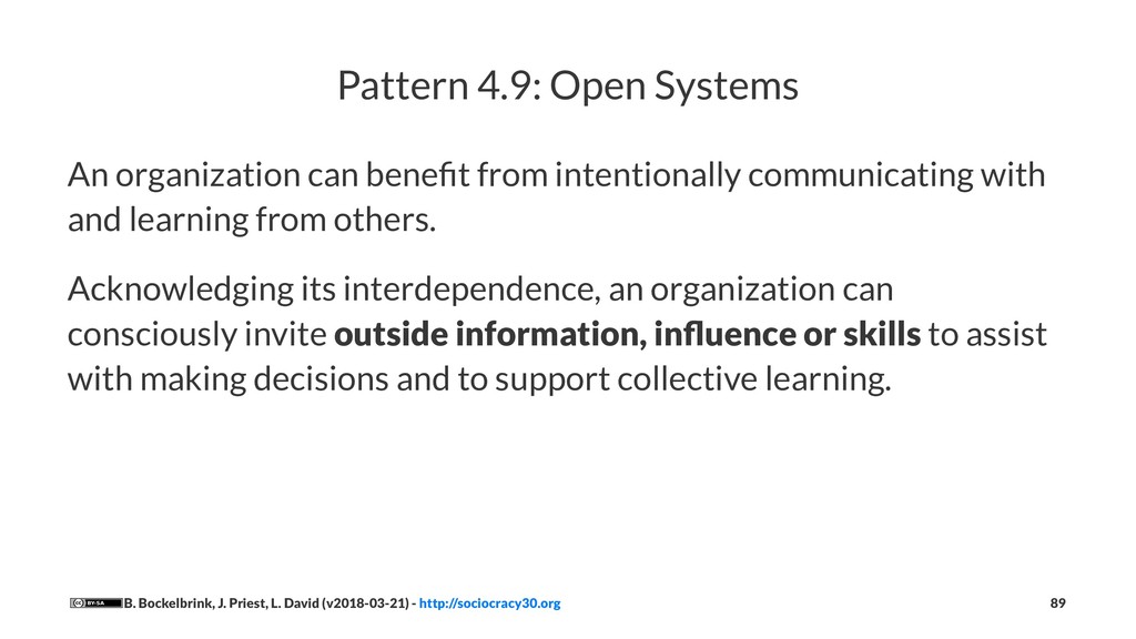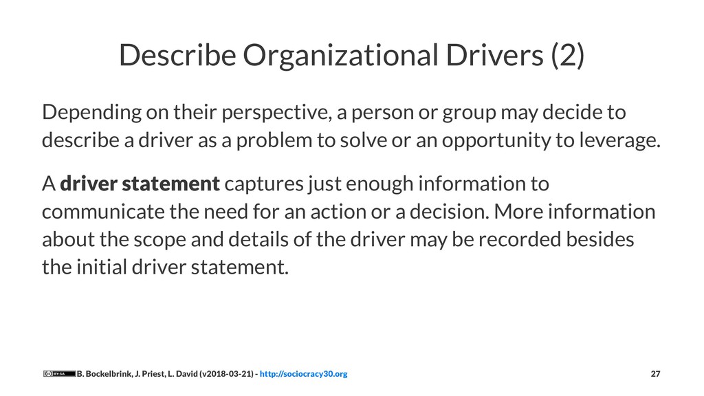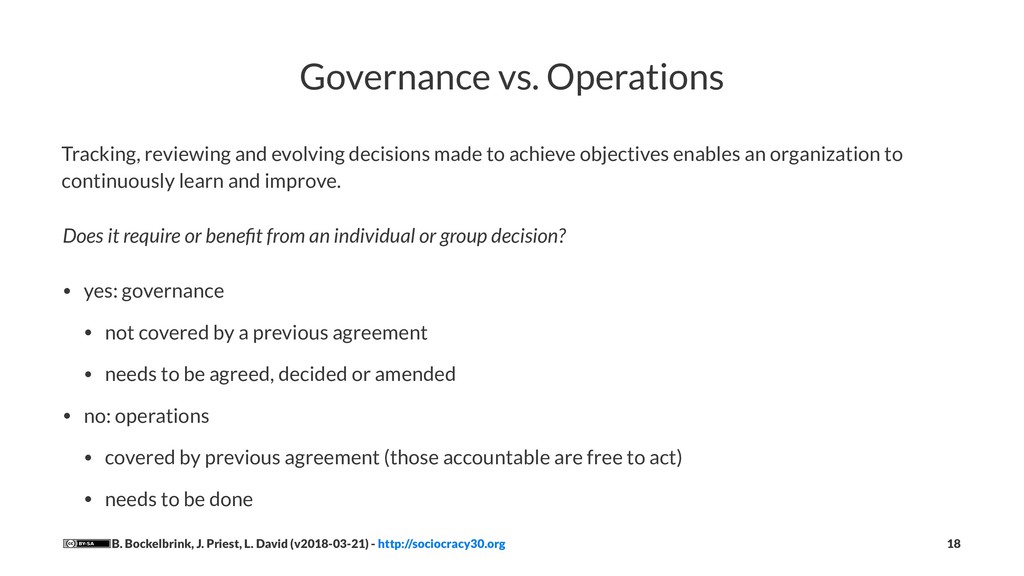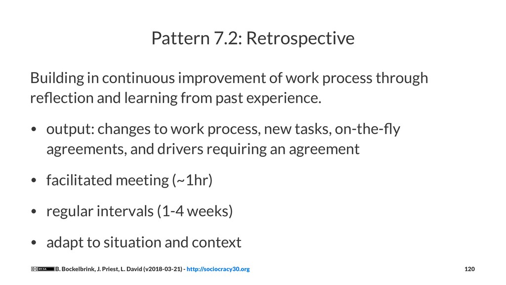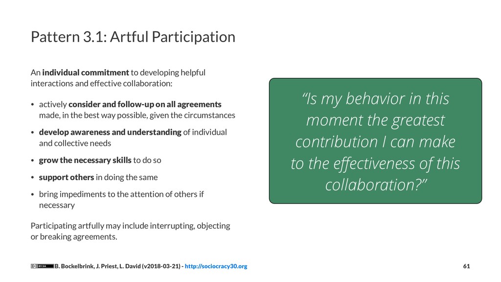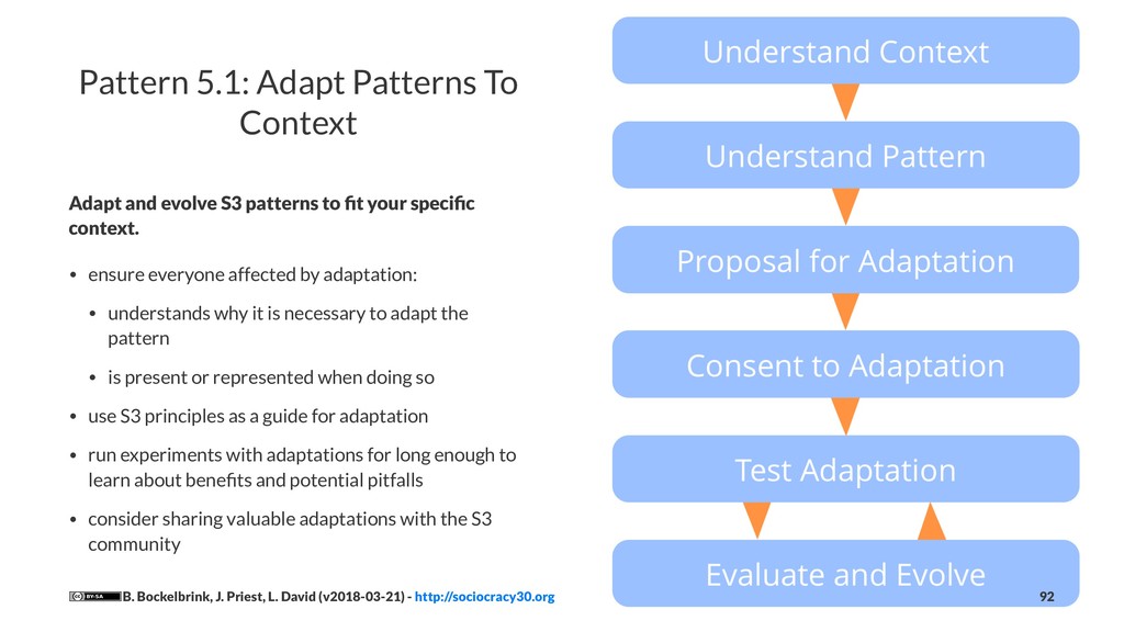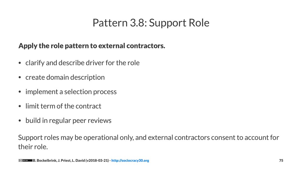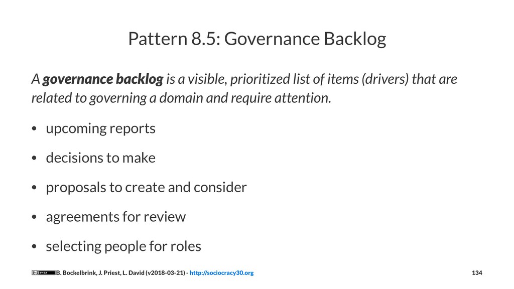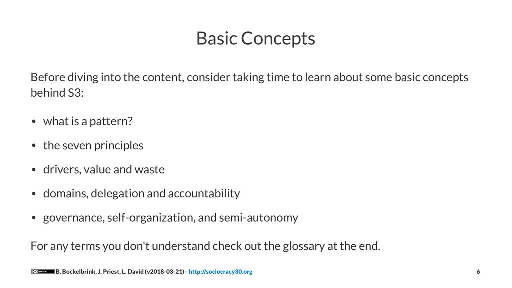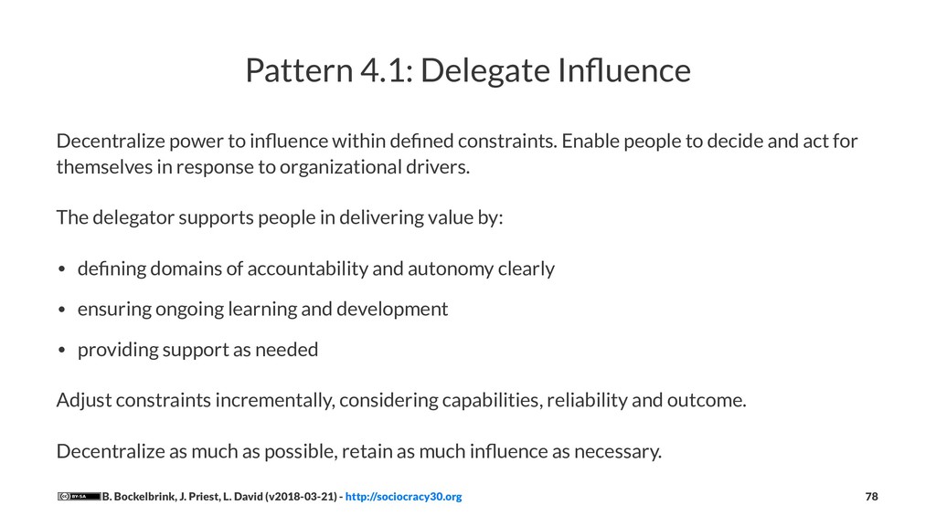 Sociocracy 3.0 (a.k.a. S3) - brings you an extensive collection of guidelines and practices (patterns) that have proven helpful for organizations for improving performance, alignment, fulfillment and wellbeing.