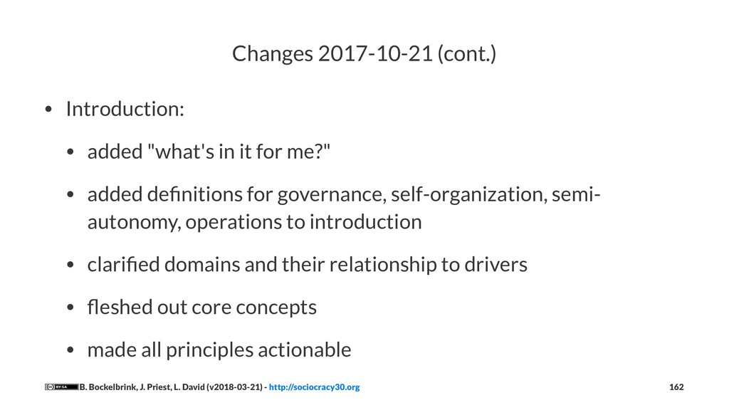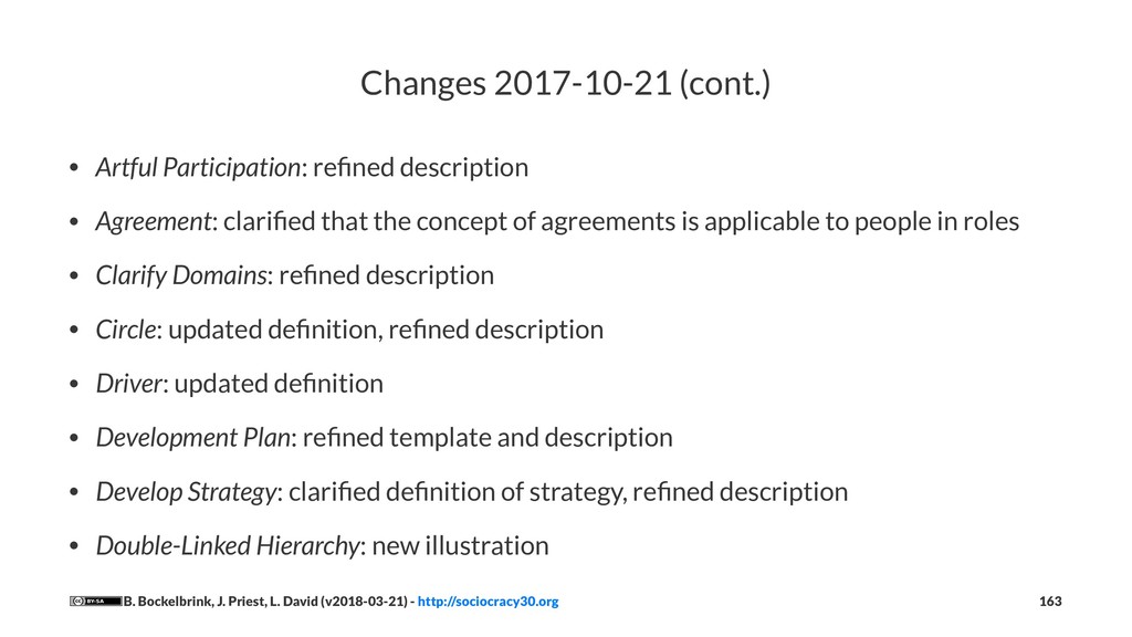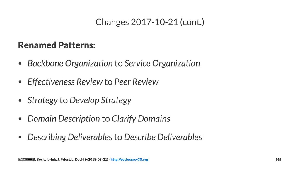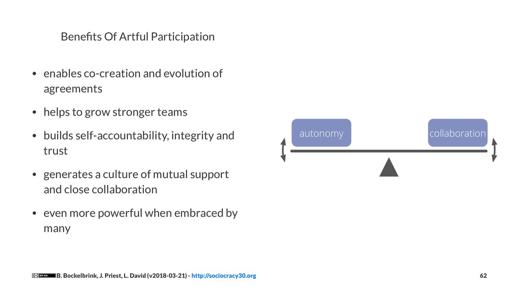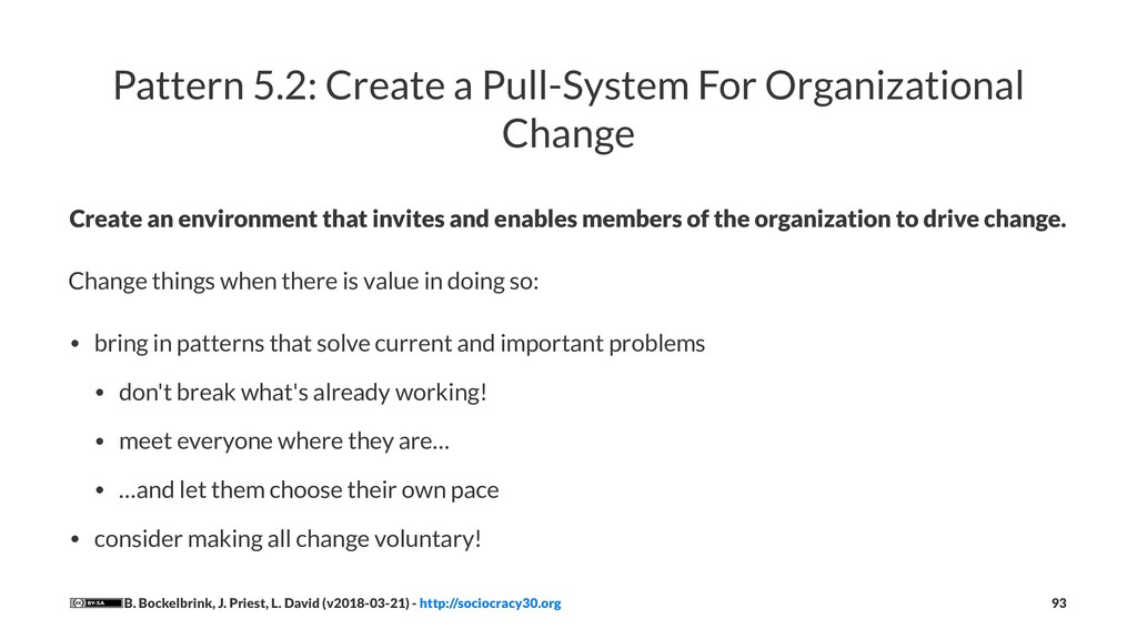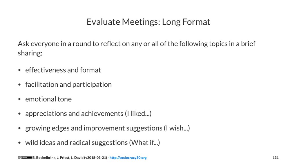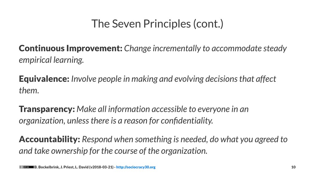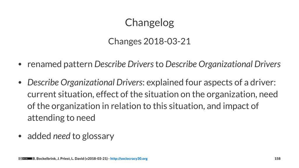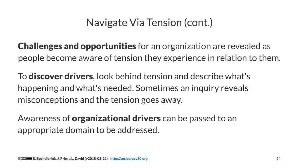 Sociocracy 3.0 (a.k.a. S3) - brings you an extensive collection of guidelines and practices (patterns) that have proven helpful for organizations for improving performance, alignment, fulfillment and wellbeing.
