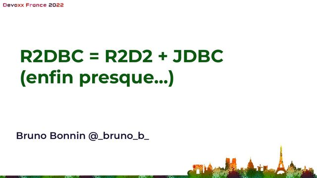 standardiser l’accès aux bases de données relationnelles en mode réactif - Il y a aussi des transactions, du batch, des entity callbacks, de l’observability, … - Support de la communauté (clients, drivers, …) - On peut faire du R2DBC sans aucun autre framework, mais ça va être un peu roots :) Mais il reste du boulot ! - Des frameworks en cours de mises à jour (Liquibase, …) - Spring : pas de support des relations dans les entités :(