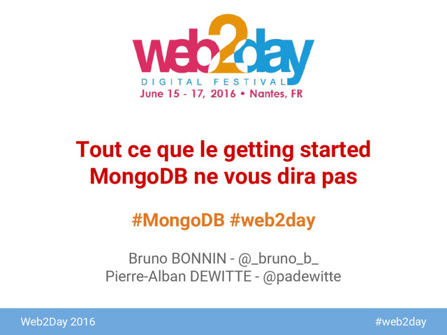 hashé • Choisissez bien vos clées de sharding • Surveiller les plages de lancement du balancer • Nettoyer régulièrement les orphans • Ne jamais lire sur un secondary si l’ exactitude de la donnée est critique https://docs.mongodb.org/manual/reference/command/cleanupOrphaned/ https://www.kchodorow.com/blog/2011/01/04/how-to-choose-a-shard-key-the-card- game/