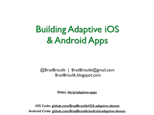 Want to learn how to create adaptive iOS and Android apps that are optimized for both small and large devices? In this talk, we’ll explore the latest iOS and Android techniques we can apply to create universal apps that adapt their content for all device sizes.