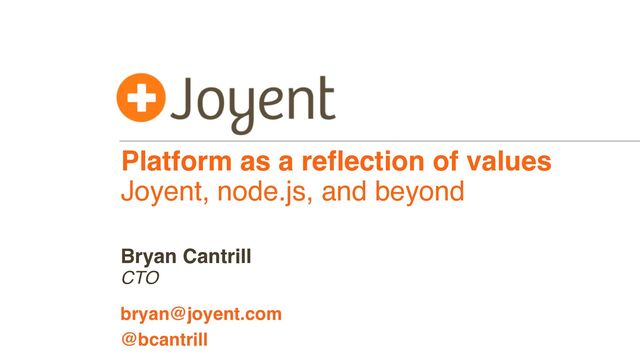 values are — and aren’t • Growth may be an objective, but growth is not a value! • Claptrap around values that node.js doesn’t in fact have only plants the seeds of disappointment and discord • node.js should be upfront that compatibility with JavaScript will trump robustness, debuggability, stability, etc. • We remain hopeful that node.js will be a big enough tent to not run so counter to our values that we abandon it entirely!
