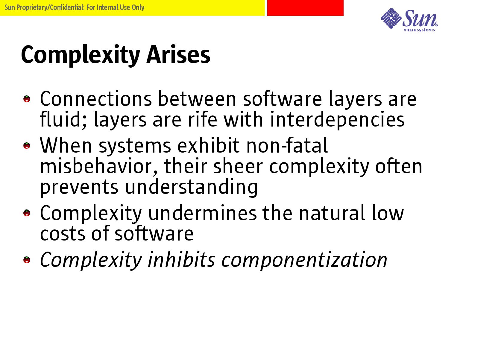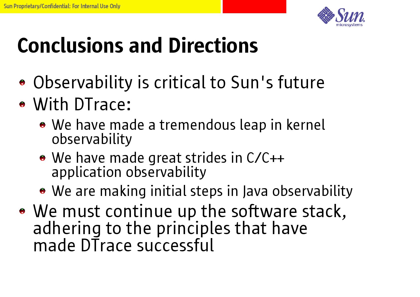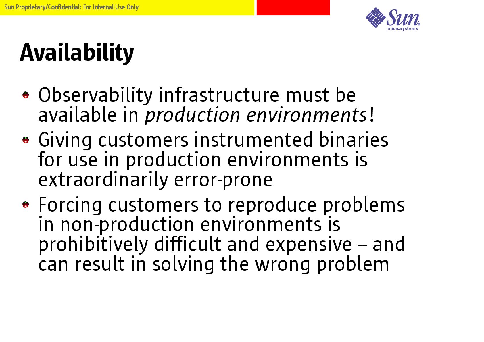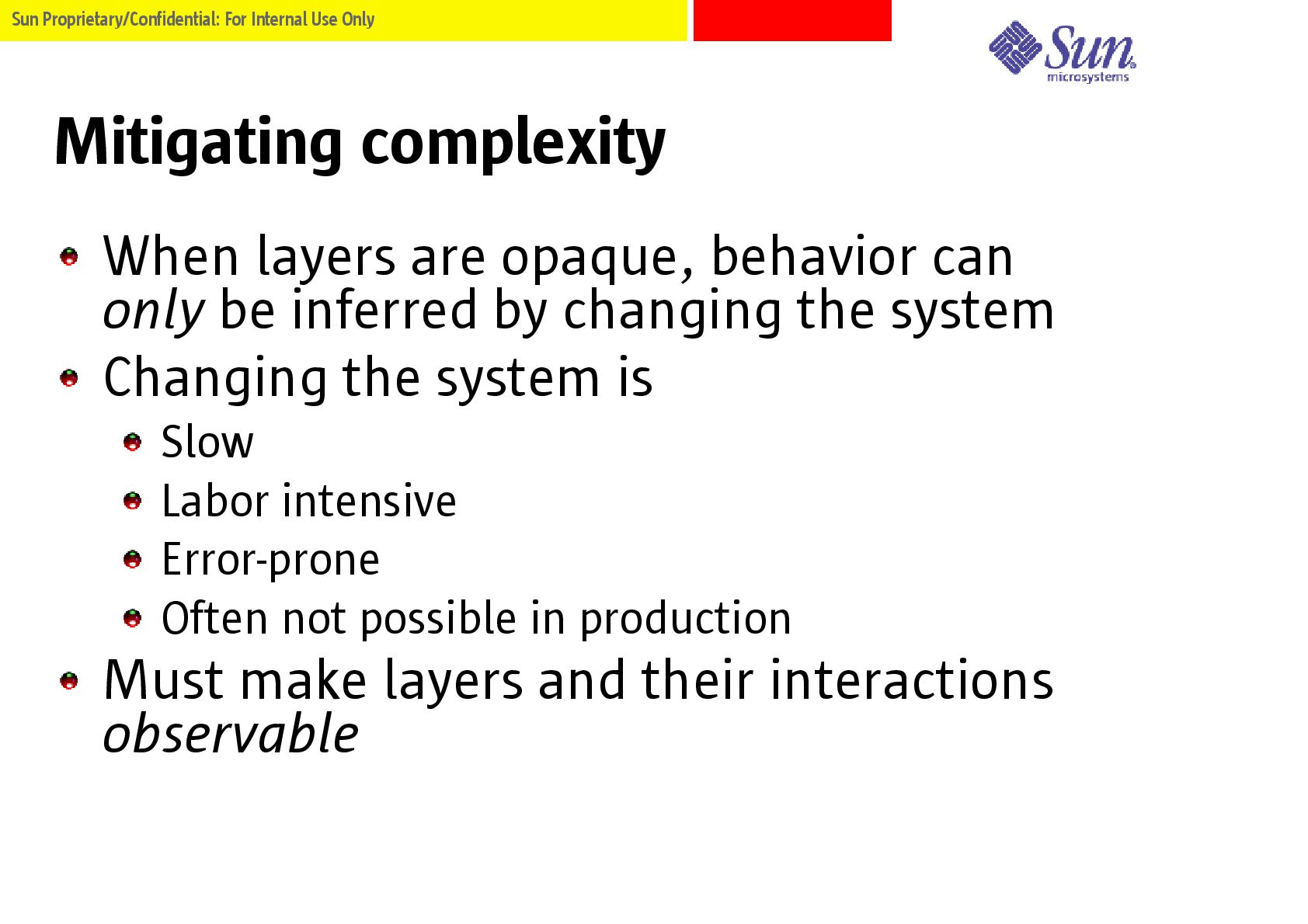 Presentation given on February 28, 2003 at Sun's internal Software Technology Conference at the Agnews Auditorium in Santa Clara. This presentation is one of the earliest that ties the work we were doing on DTrace to the more abstract idea of software observability.