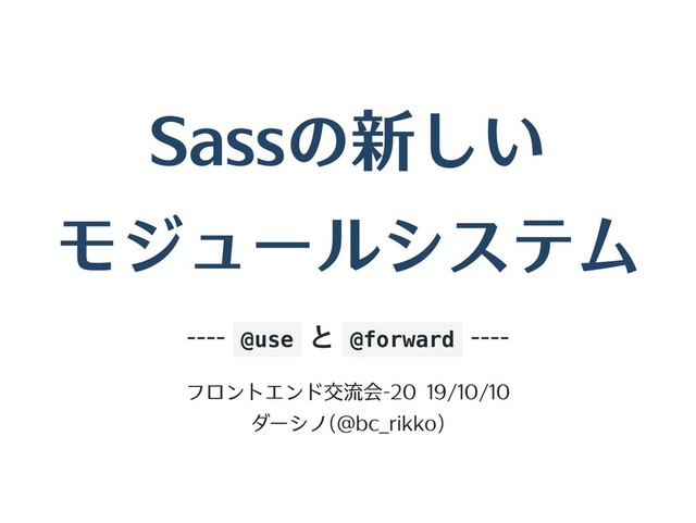 Sassの新しい モジュールシステム ‑‑‑‑ @use と @forward ‑‑‑‑ フロントエンド交流会 ‑ 2019/10/10