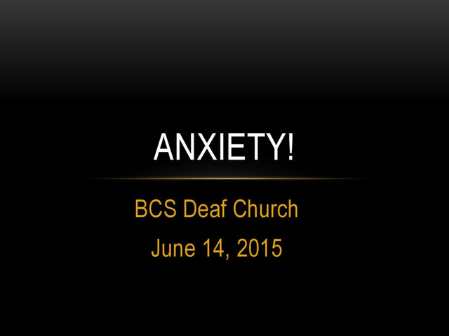 BCS Deaf Church Sermon from June 14th, 2015 continues the series on the Sermon on the Mount from Matthew 6:25-34. This sermon looks at worry and stress from a biblical perspective