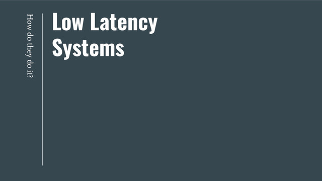 Swap) operations ◦ Lock free data structures • Context Switching ◦ One thread per core • False Sharing ◦ Keep hot data in its own “cache line” • Branch Misprediction ◦ Branchless algorithms (bit manipulation tricks)