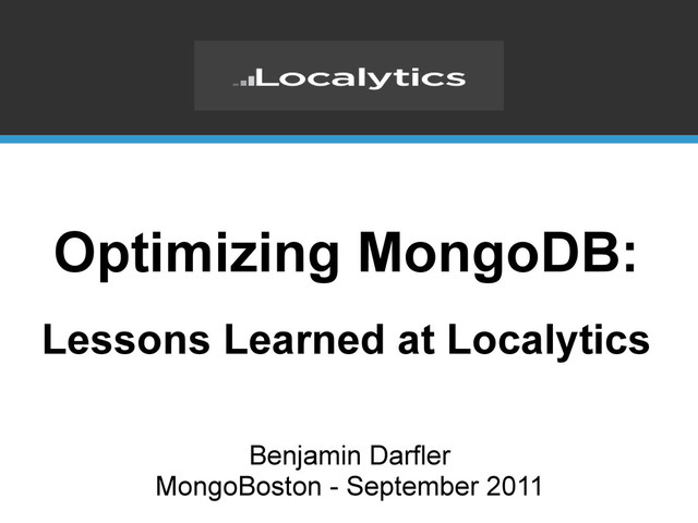 Software Engineer at Localytics • Localytics o Real time analytics for mobile applications o 100M+ datapoints a day o More than 2x growth over the past 4 months o Heavy users of Scala, MongoDB and AWS • This Talk o Revised and updated from MongoNYC 2011