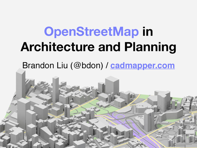 OpenStreetMap in Architecture and Planning Brandon Liu (@bdon) / cadmapper.com
