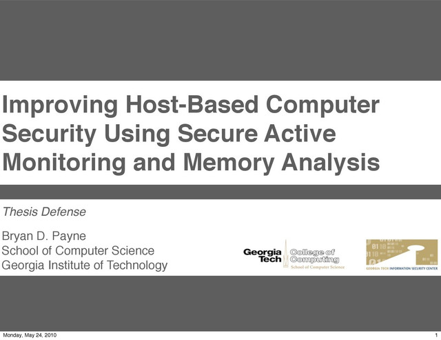 Security applications must be redesigned to work within this new monitoring architecture. The data acquired through our monitoring is typically very low-level and difficult to use directly. In this thesis, we describe work that helps bridge this semantic gap by locating data structures within the memory of a running virtual machine. We also describe work that shows a useful and novel security framework made possible through this new monitoring architecture. This framework correlates human interaction with the system to distinguish legitimate and malicious outgoing network traffic.