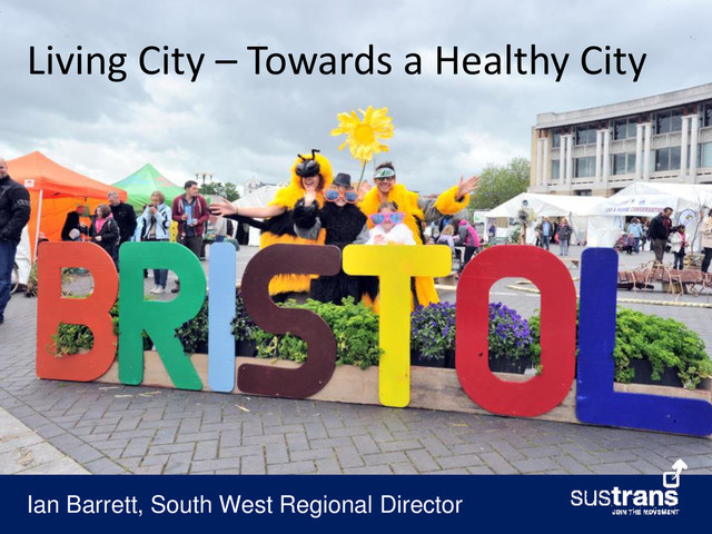 levels of walking and cycling… 0 10 20 30 40 50 60 70 At or from home Public transport Car Bicycle On foot Birmingham Bristol Leeds Liverpool Manchester Newcastle Nottingham Sheffield England and Wales 2011 Census Core Cities Comparison More people in Bristol commute to work by bicycle or on foot than in any other LA in England and Wales