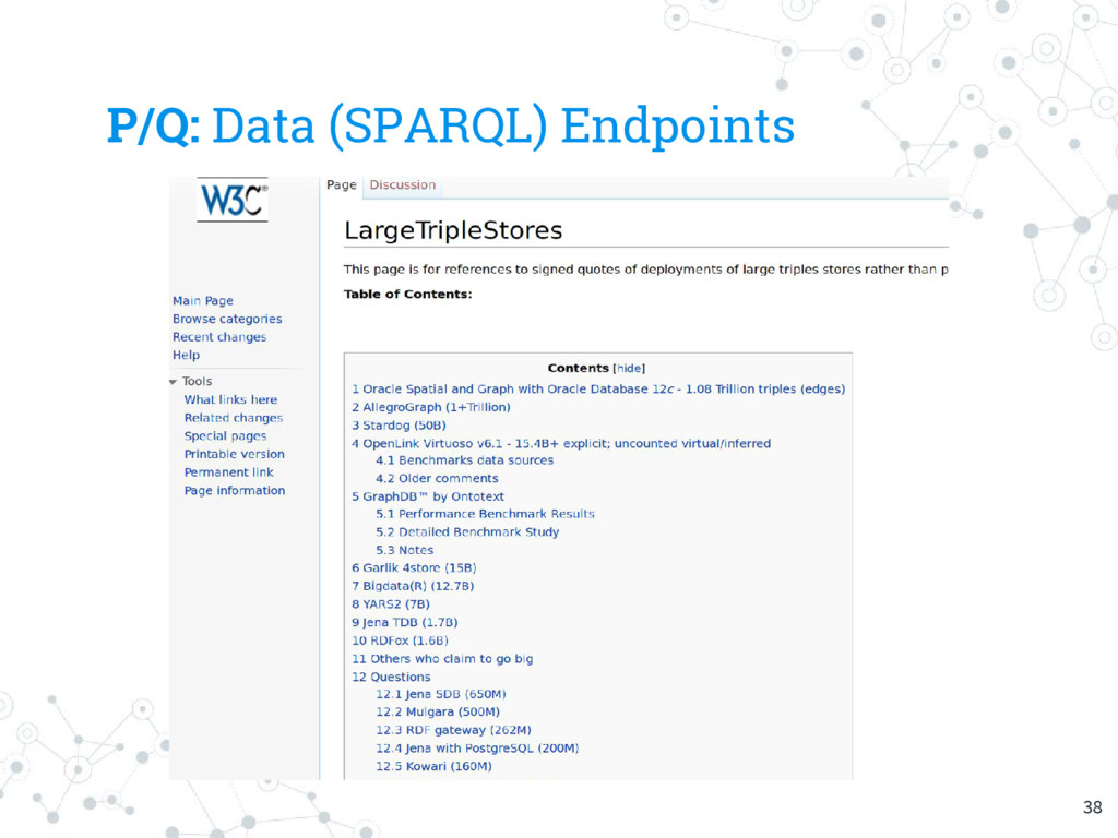 7. P/Q: Data (SPARQL) Endpoints -OpenLink Virtuoso -Allegro Graph -Apache Jena