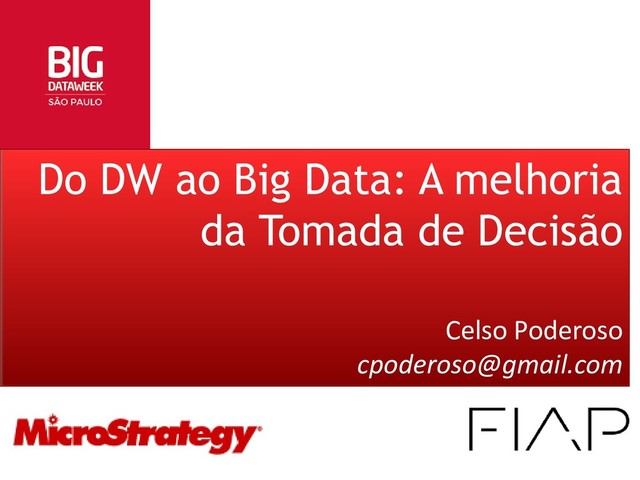 Informação Mestre em Tecnologia (Grid Computing/Cloud Computing) Atuação Profissional: Professor graduação Professor de pós-graduação Coordenador de Pós-Graduação na FIAP Diretor de Serviços na MicroStrategy Livros Publicados: Guias de Referência: Oracle PL/SQL 8i, 9i e 10g Livro: SQL Curso Prático Celso Poderoso