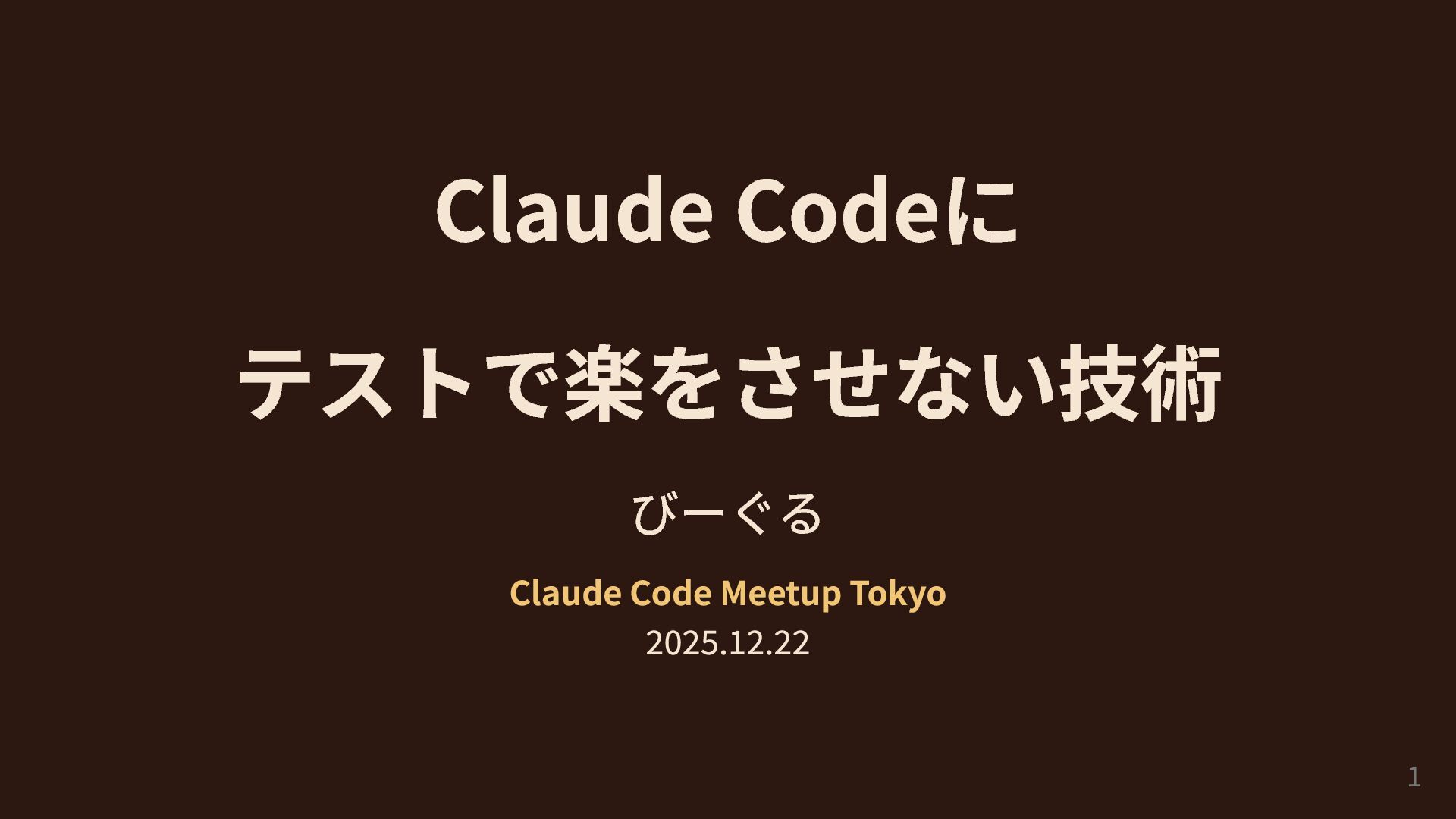 Claude Codeに テストで楽をさせない技術 びーぐる Claude Code Meetup Tokyo 2025.12.22 1