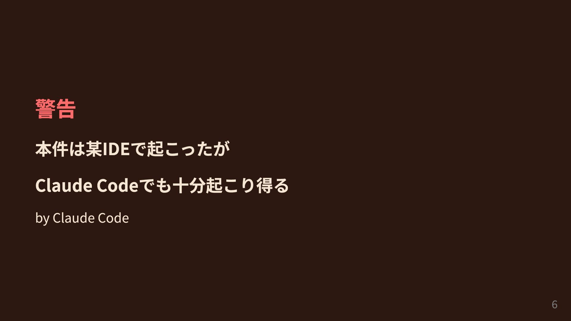 警告 本件は某IDEで起こったが Claude Codeでも十分起こり得る by Claude Code 6