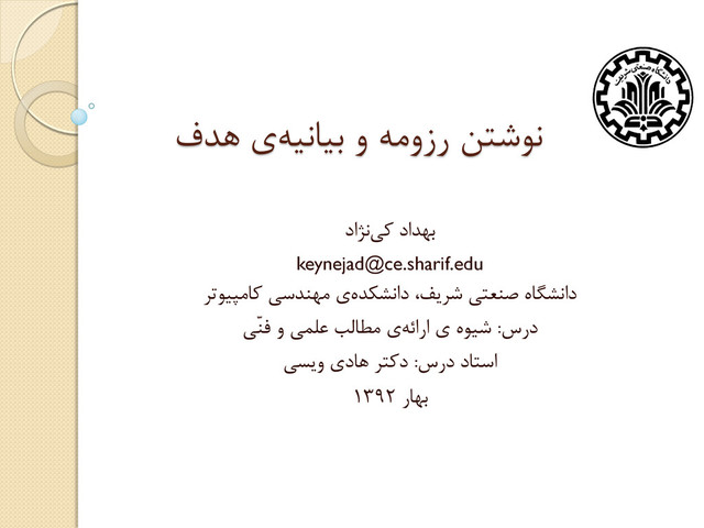 رتویپماک یسدنهم ی هدکشناد ،فیرش یتعنص هاگشناد سرد : ی هویش یّنف و یملع بلاطم ی هئارا سرد داتسا : یسیو یداه رتکد راهب 1392