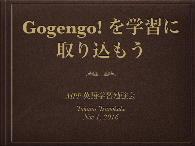 Gogengo! Λֶशʹ औΓࠐ͏ MPP ӳޠֶशษڧձ Takumi Tsunokake Nov 1, 2016