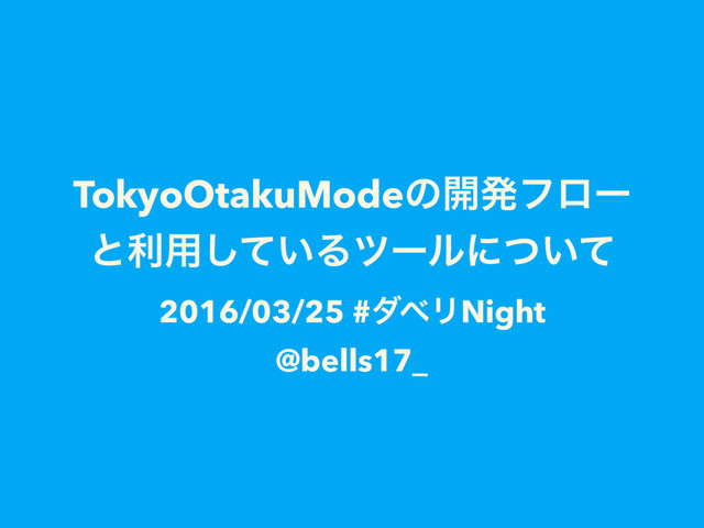 バックオフィスダベリNight http://ci-daberi.connpass.com/event/28155/ でLTしたスライドです TokyoOtakuModeの開発フローと開発周辺で使っているツールについてざっくりとまとめて話しました