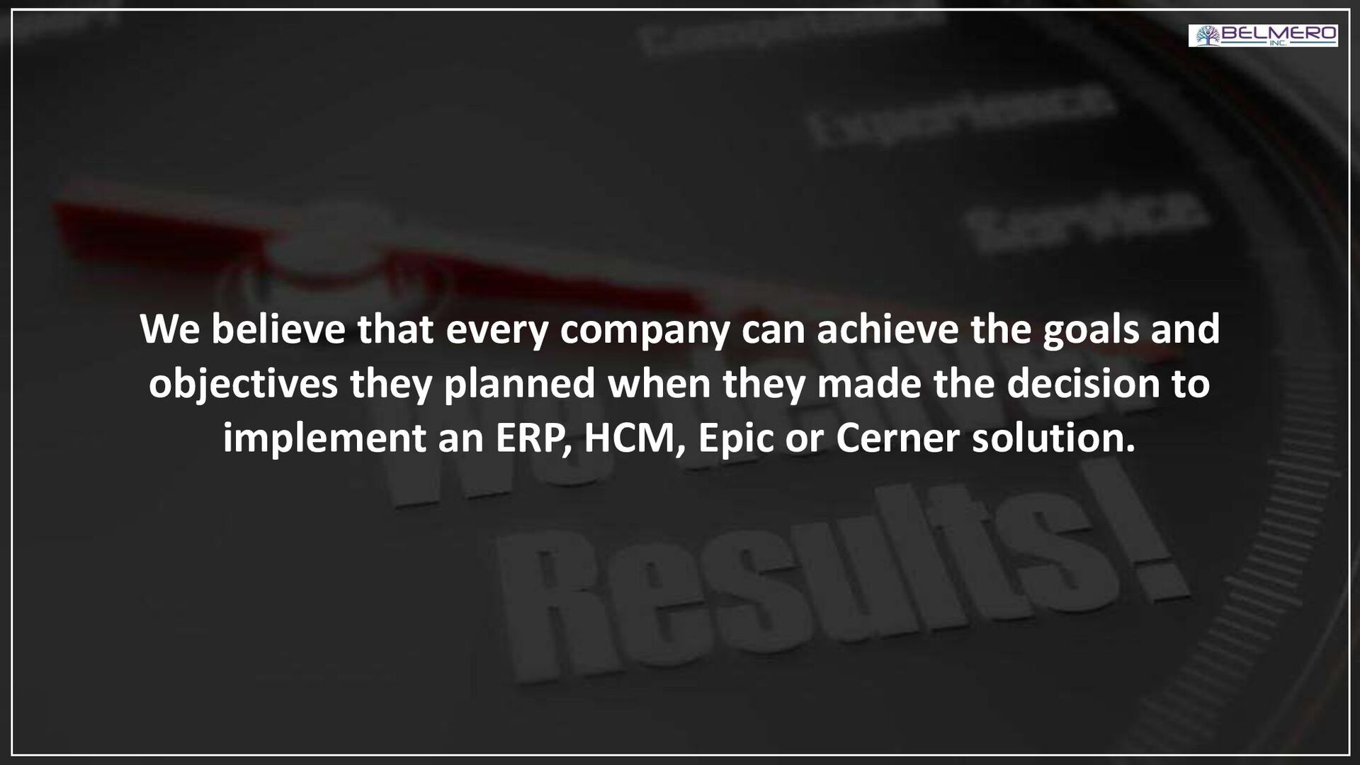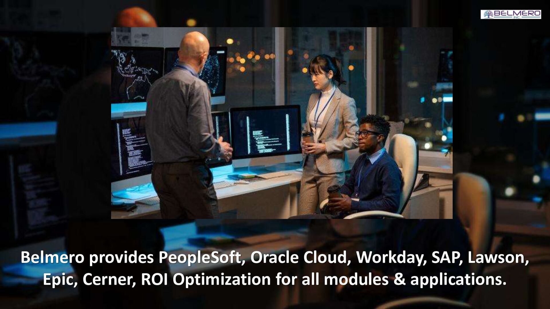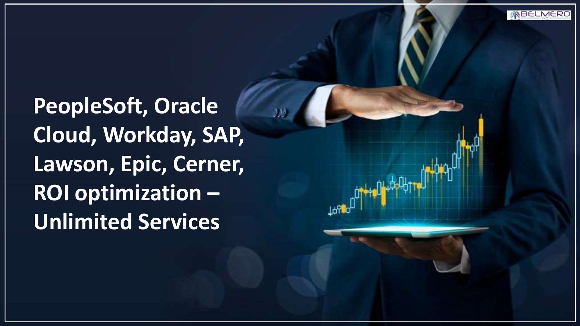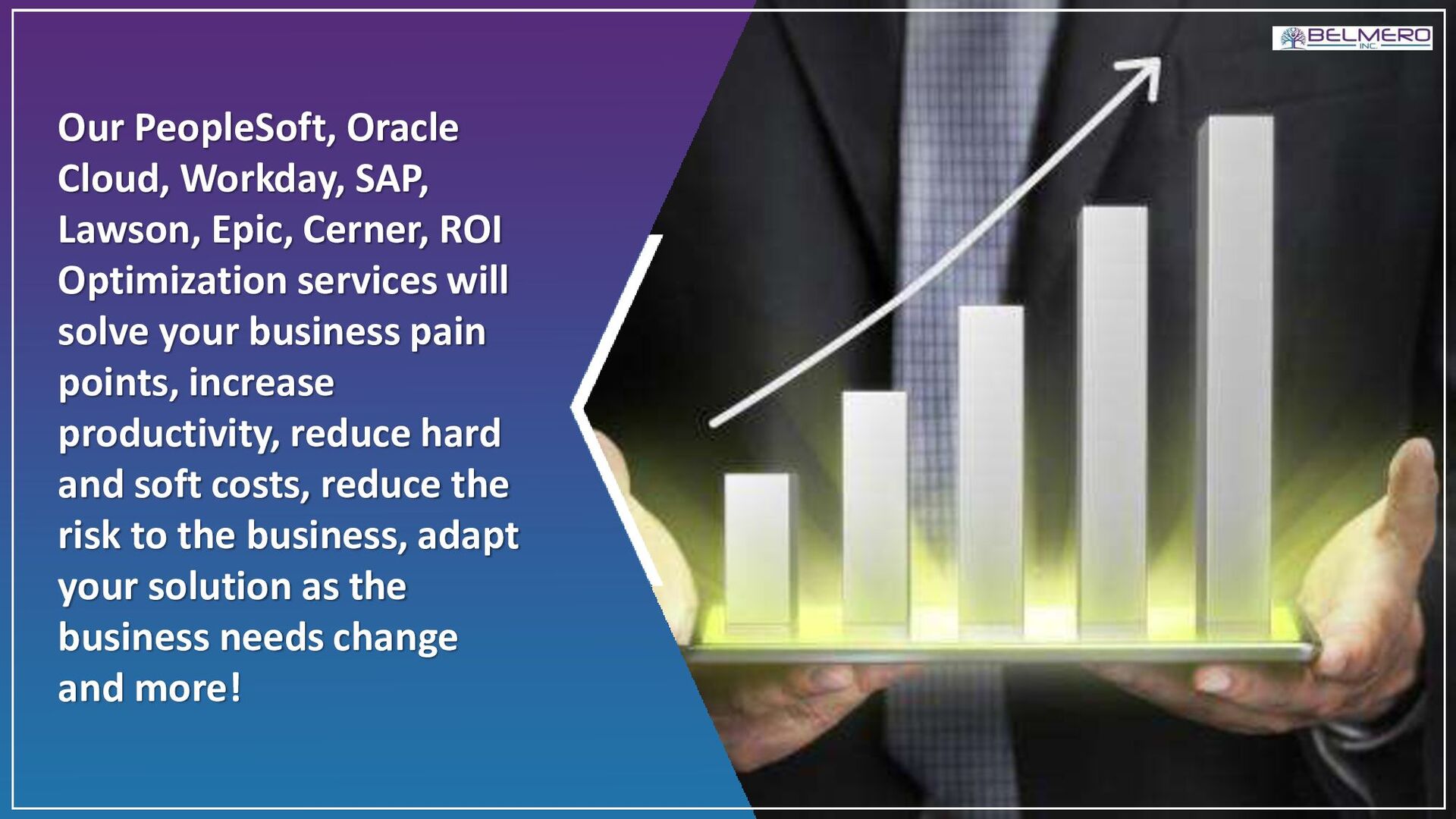 https://www.belmero.com - Belmero provides PeopleSoft, Oracle Cloud, Workday, SAP, Lawson, Epic, Cerner, ROI Optimization for all modules & applications. We take it to a whole new level! We combine the traditional Business Process Management (BPM) with our proprietary Operational Optimization System (Business PCR™) to help clients get a big ROI and achieve their strategic goals! Our PeopleSoft, Oracle Cloud, Workday, SAP, Lawson, Epic, Cerner, ROI Optimization services will solve your business pain points, increase productivity, reduce hard and soft costs, reduce the risk to the business, adapt your solution as the business needs change. We believe that every company can achieve the goals and objectives they planned when they made the decision to implement an ERP, HCM, Epic or Cerner solution.