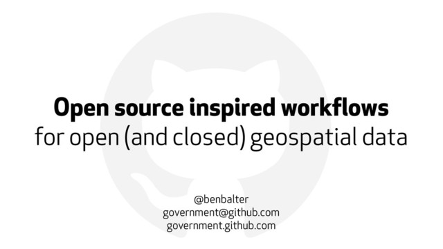 Open source software is produced by distributed teams rarely in the same place at the same time, rarely working on the same thing at the same time, yet they consistently produce better results than their closed source and proprietary counterparts. A big part of their continued success is open source's unique workflow and tools. What would it look like to treat geospatial data with the same respect that open source developers treat their code? What if we took the tools and workflows of open source and used them to create collaborative geospatial tools and datasets, even if that data was ultimately never public?