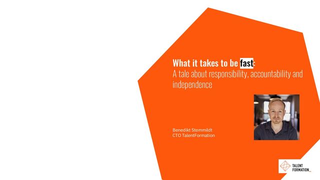 Nowadays being fast is one of the most important goals of every company. Being fast at entering a new market, being fast at developing new features, being fast at innovating new products. Time To Market is the fuel for every company’s Build, Measure, Learn cycle. If you run through it faster you learn much more in a shorter time, giving you a huge advantage over competitors. This is pretty obvious, but how do you make this happen? Benedikt would like to tell you a story about the power of independence.