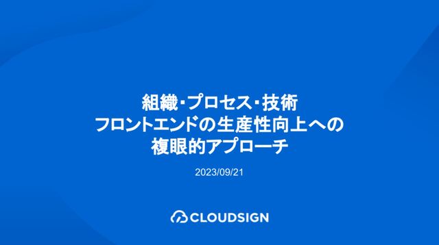 Findy社主催「フロントエンドの開発生産性〜Online Conference〜」のスポンサーセッションにて、クラウドサイン EMの芳賀が登壇した際の資料です。 イベントURL:https://findy.connpass.com/event/294482/
