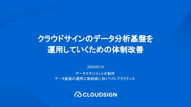 2024年5月14日(火)「【弁護士ドットコム|キャディ|コミューン】データ基盤運用の工数削減に効いた俺的ベストプラクティス データマネジメントの勘所」に開催された、弁護士ドットコム株式会社 クラウドサイン事業本部 Reliability Enginering部 SREチーム 高橋 光希が登壇した際の資料です。