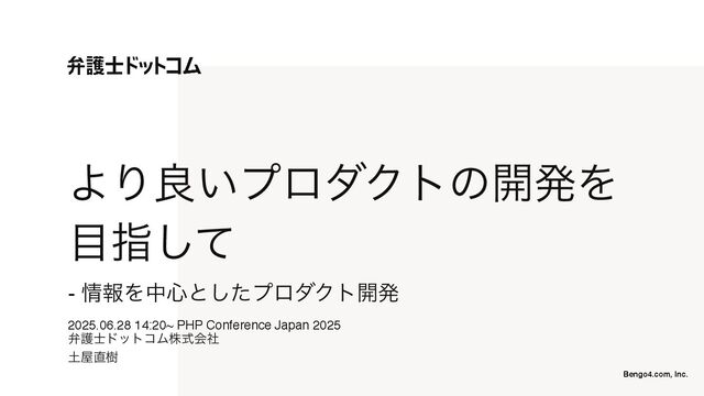 2025年6月28日(土)開催、「PHP Conference Japan 2025」で登壇した、弁護士ドットコム株式会社 開発本部 リーガルブレイン エンジニア の土屋が登壇した際の資料です。