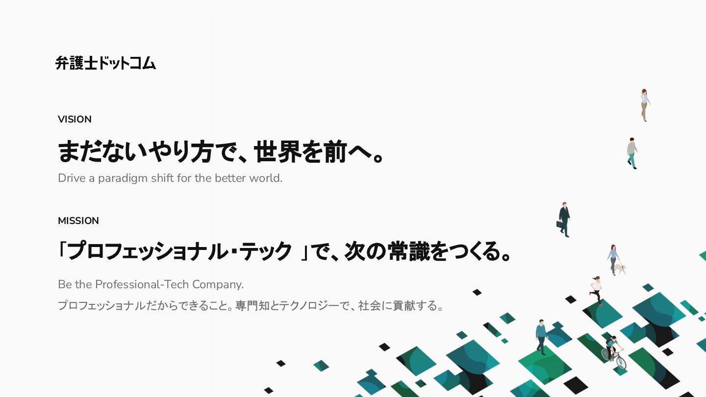 1. Bengo4.com,Inc. VISION まだないやり方で、世界を前へ。 Drive a paradigm shift for the better