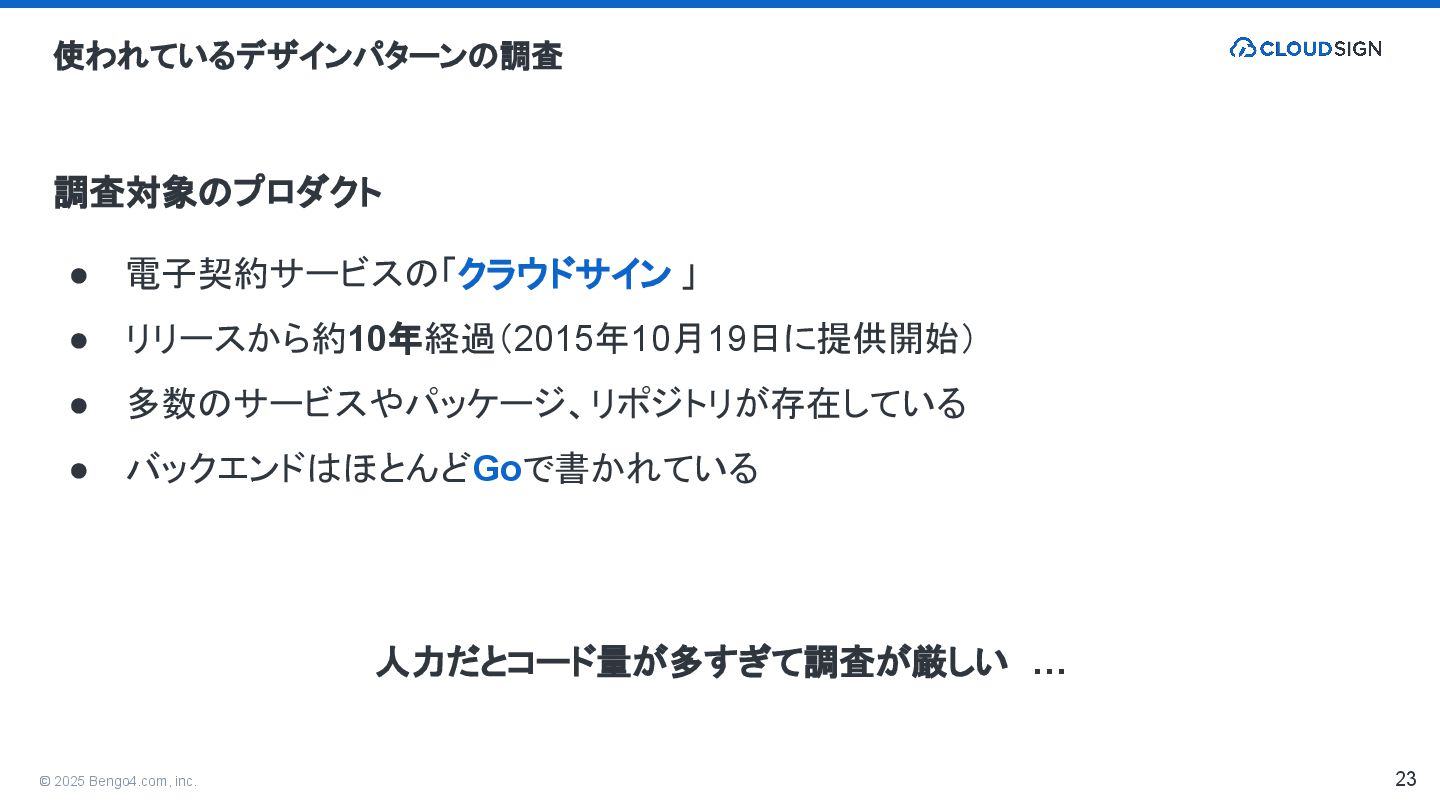 10. © 2025 Bengo4.com, inc. 使われているデザインパターンの調査 調査対象のプロダクト • 電子契約サービスの「クラウドサイン 」 •