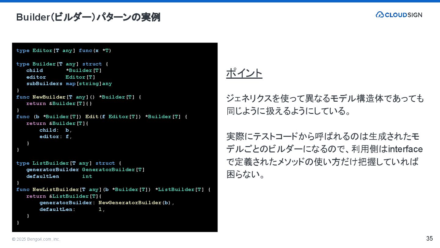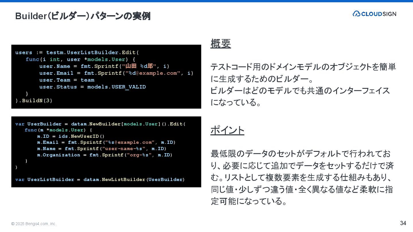 15. © 2025 Bengo4.com, inc. Builder(ビルダー)パターンの実例 34 users := testm.UserListBuilder.Edit( func(i