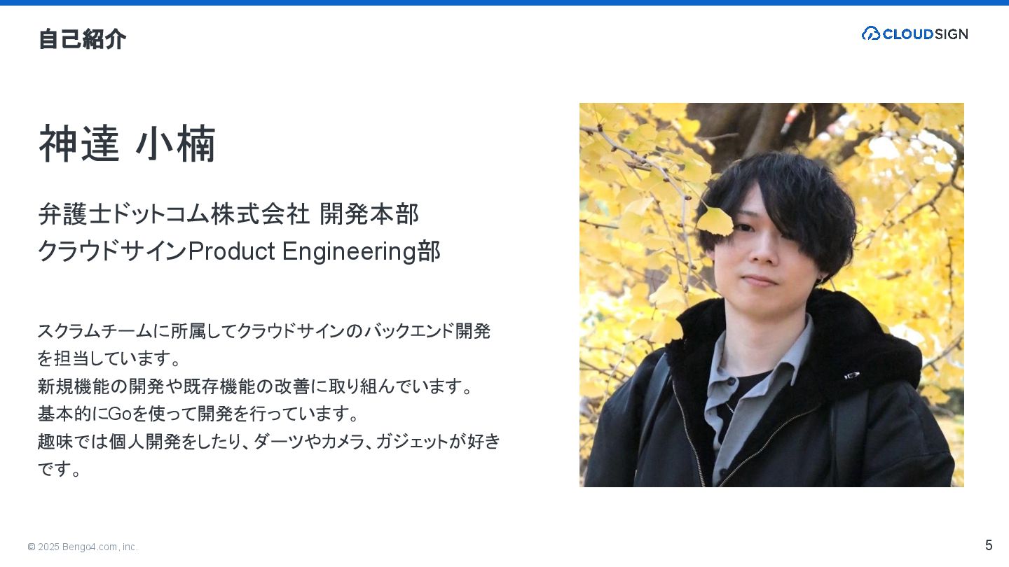 3. © 2025 Bengo4.com, inc. 自己紹介 神達 小楠 弁護士ドットコム株式会社 開発本部 クラウドサインProduct