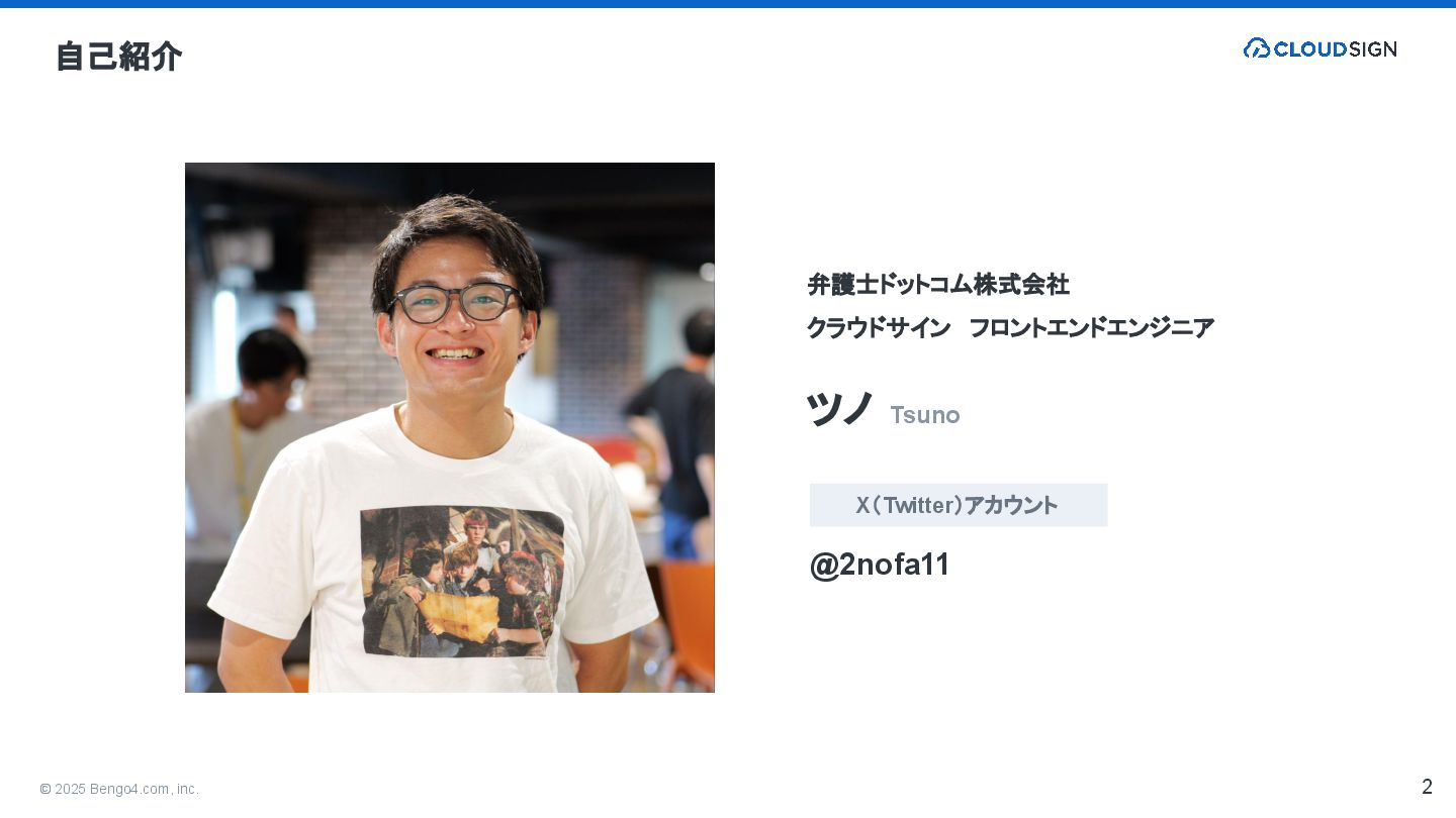 2025年10月25日(土)「Vue Fes Japan 2025」に開催された、弁護士ドットコム株式会社 クラウドサイン フロントエンドエンジニアのツノが登壇した際の資料です。