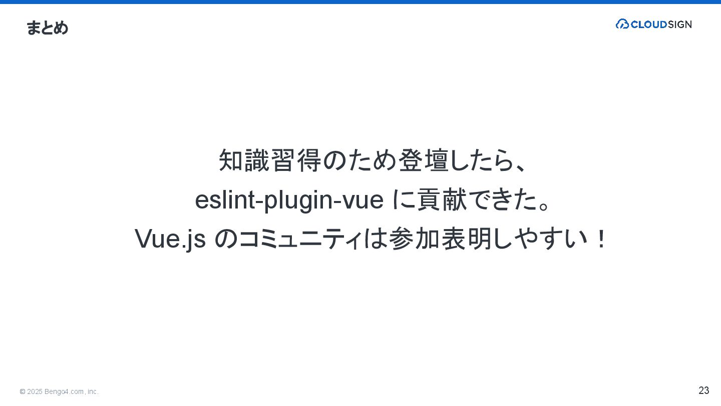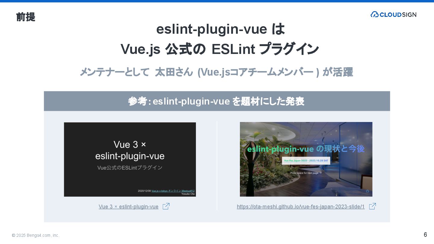 2. © 2025 Bengo4.com, inc. 6 eslint-plugin-vue は Vue.js 公式の ESLint