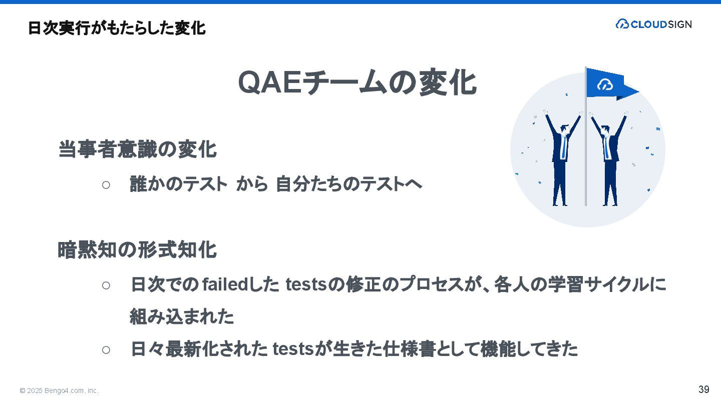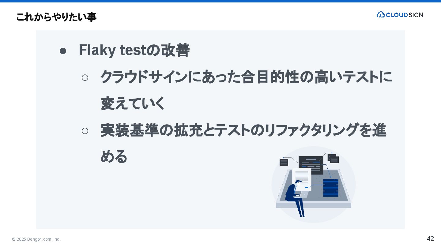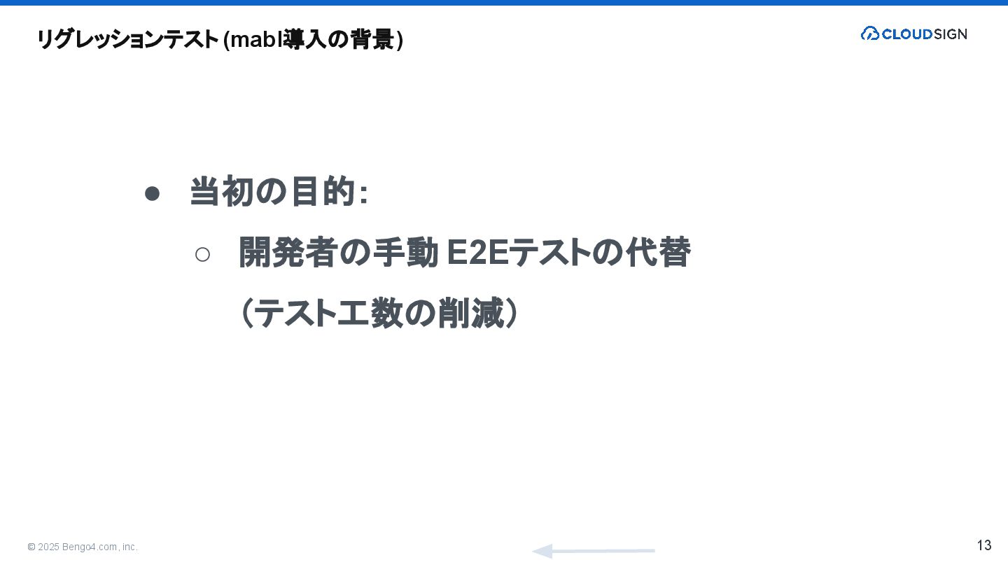 2025年11月26日(水)「mabl Experience 2025」に開催された、弁護士ドットコム株式会社 クラウドサイン QAEチームマネージャの田中翔が登壇した際の資料です。