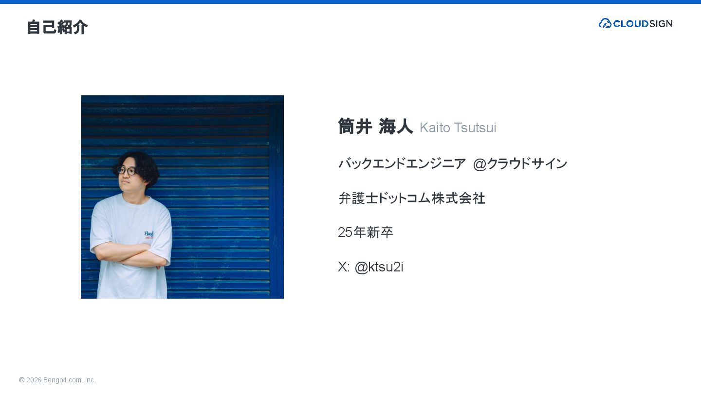 1. © 2026 Bengo4.com, inc. 自己紹介 筒井 海人 Kaito Tsutsui バックエンドエンジニア