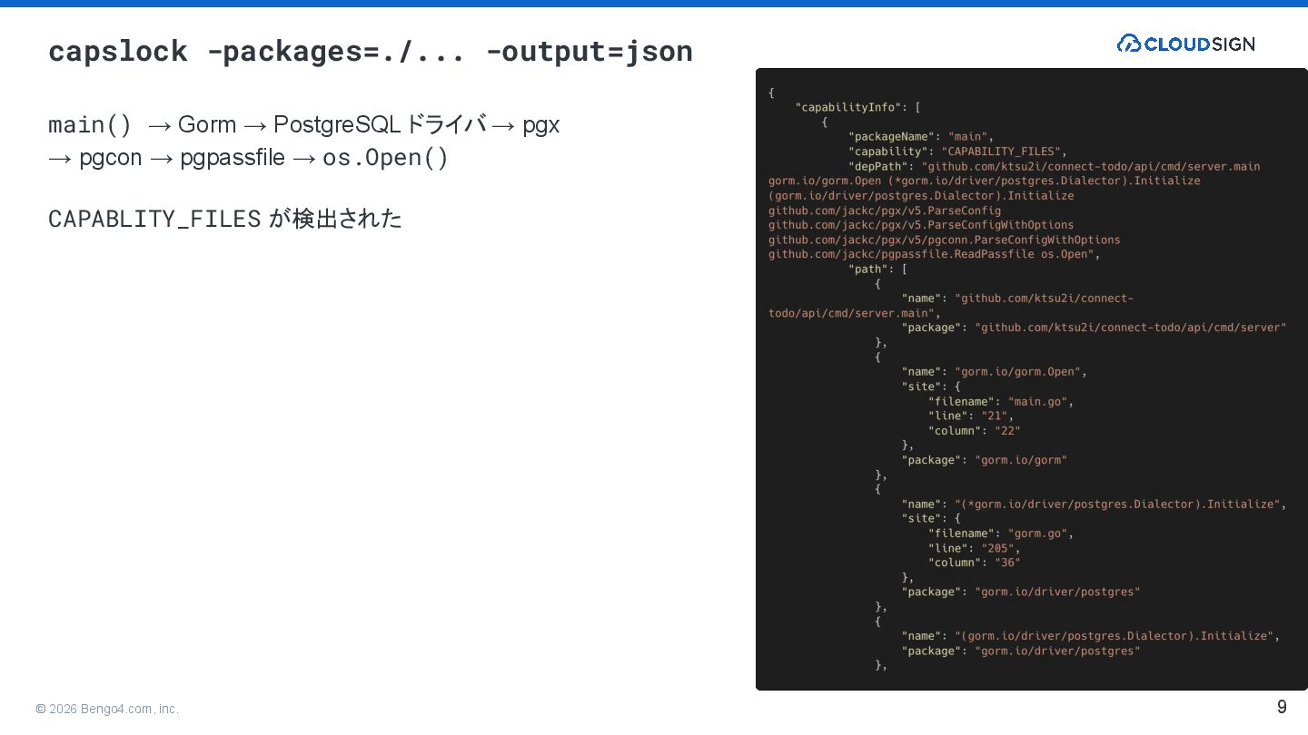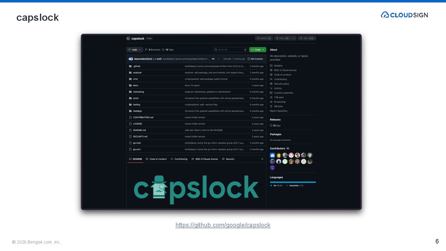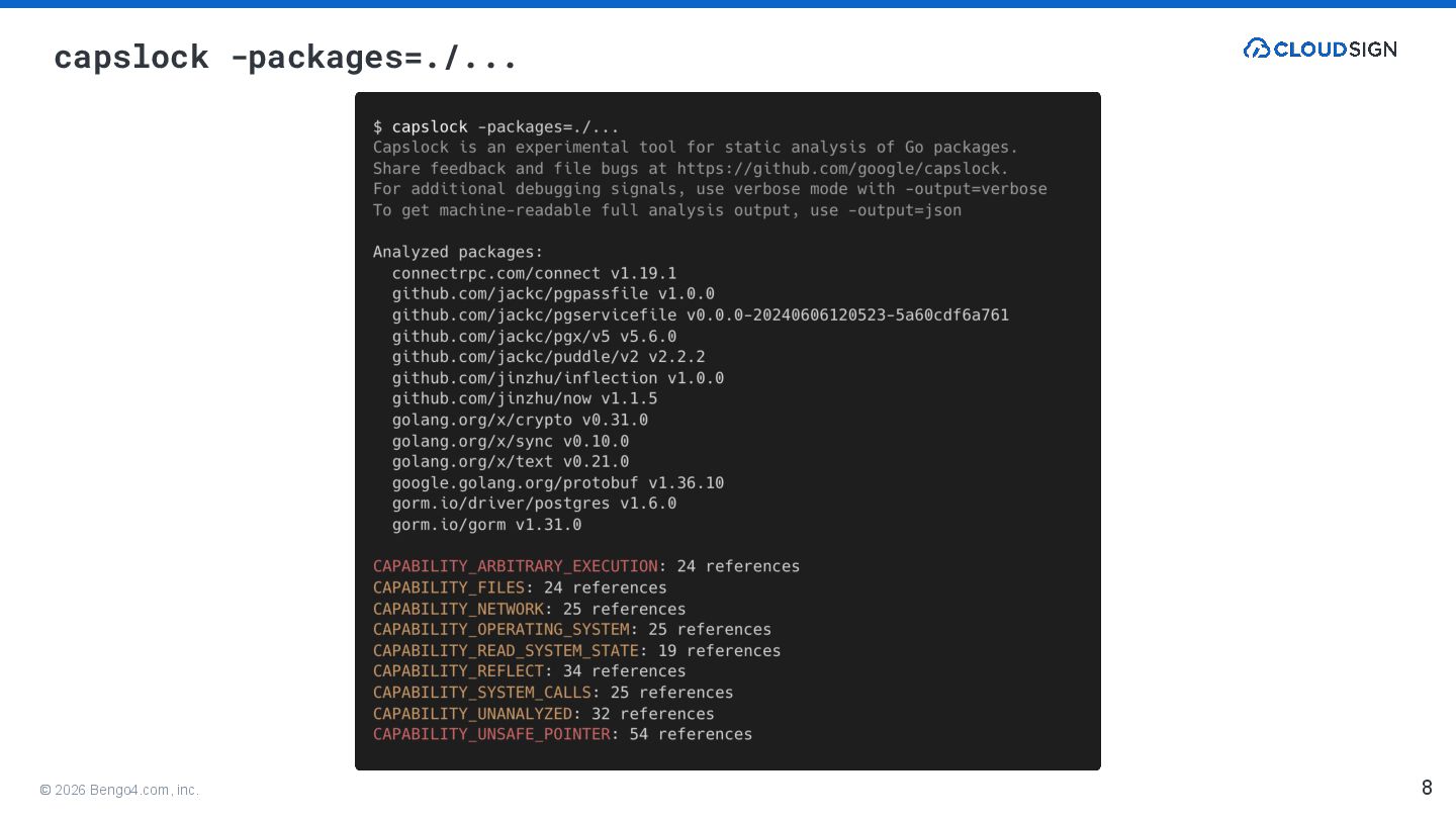 9. © 2026 Bengo4.com, inc. • https://github.com/google/capslock • https://medium.com/eureka-engineering/what-are-your-go-dependencies-capable-of-an-introduction-to-capslo ck-b757833c9847 •