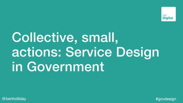 SIMPLE Design principles Government Digital Service 1 User needs, not government needs 2 Do less 3 Design with data 4 Do the hard work to make it simple 5 Iterate. Then iterate again 6 This is for everyone 7 The unit of delivery is the team 8 Build things people can build on 9 Be consistent not uniform 10 Make things open, it makes them better www.gov.uk/designprinciples 04.2014 NOT GOVERNMENT NEEDS