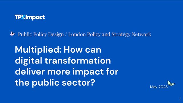 together modern design, digital technologies, and innovative change programmes. Lessons from the pandemic Learnings from the public sector's response to the pandemic, and why things shouldn't revert back to how they were before. Making more possible How organisations are rethinking the relationships they have with society, working more closely with local communities. Hyper-local futures Understanding the need to fundamentally reshape our public institutions, delivering better outcomes for people and the places they live. A new mindset The need for a new mindset, as well as new skill sets to deliver policy and joined up services. Value multiplied Demonstrating that better value for money is possible, and that we should expect wider benefits for society. Themes tpximpact.com/multiplied-book