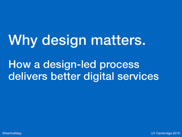 UX Cambridge 2015 @benholliday Why design matters. How a design-led