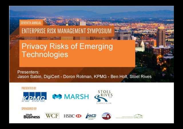 Enterprise Risk Management Symposium, Salt Lake City, Panel Presentation with Jason Sabin of DigiCert, Doron Rotman of KPMG and Ben Holt of Stoel Rives