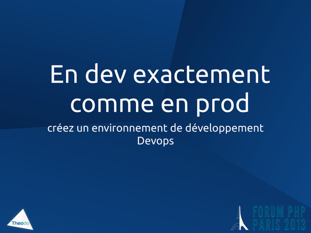 MySQL, Symfony 1.4...) • instructions d’installation • troubleshootings Facilitez l’installation • pour un nouveau développeur • pour l’ops Facilite l’installation du projet