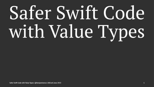 Safer Swift Code with Value Types | @benjaminencz | AltConf, June 2015 13