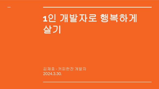 1인 개발자로 사는 이야기를 나눴습니다. 블로그에서 자주 이야기 하는 내용들 + 몇 가지 에피소드들을 더 이야기했습니다.