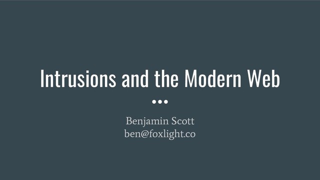 Intrusions and the Modern Web Benjamin Scott