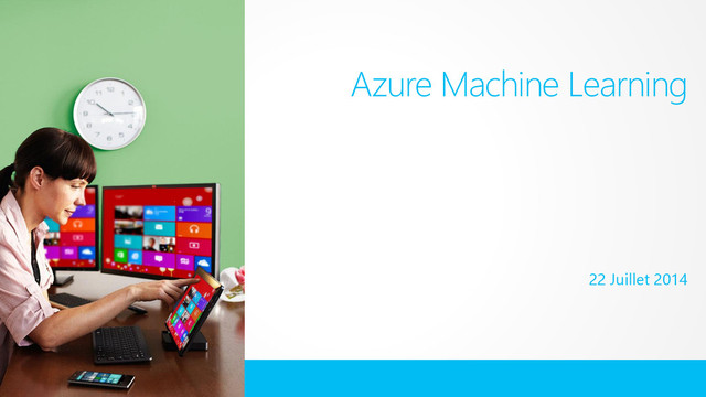 and update Ensure enterprise- grade security Peace of mind with best-in- class data and identity security features Amplify your investments Get more from you machine learning and Azure solutions Operationalize in minutes Tooled for quick deployment, hand-off and updates Set up an Azure subscription in seconds with the help of a set-up Wizard Quickly enable data scientists by creating MLStudio workspaces assigned by Windows Live ID Predict expenses by monitoring storage and CPU usage of workspaces and web services with a near real-time view Receive alerts when a model is ready for production or update Provide data access only to those who need it with unique storage account keys Securely scale to tackle the largest datasets Control access with Azure’s best-in- class identity management solution Leverage, extend and share proprietary models Access business-tested algorithms from Microsoft—including those that power Bing and Xbox Boost data scientist productivity by providing time-saving tools and enabling collaboration Gain new insights on existing Azure data Deploy tested models to production with one click Quickly share results with business users—from anywhere on any device Receive alerts when a new or replacement model is ready Easily share web services with developers by providing a url