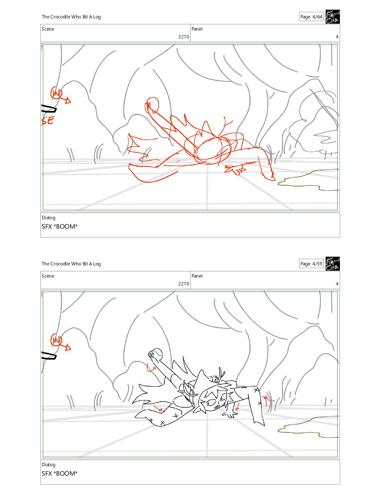 Bit A Log Page 4/64 Scene 2210 Panel 4 Dialog SFX *BOOM* The Crocodile Who Bit A Log Page 4/59