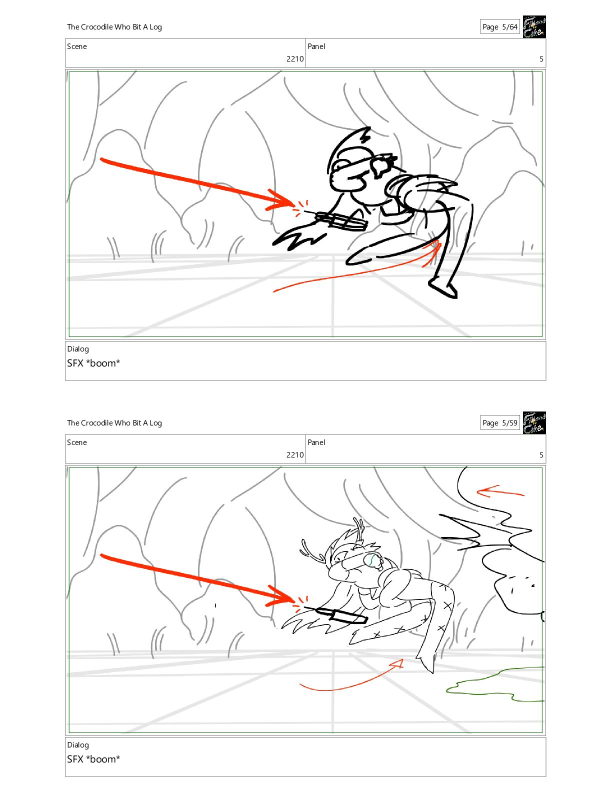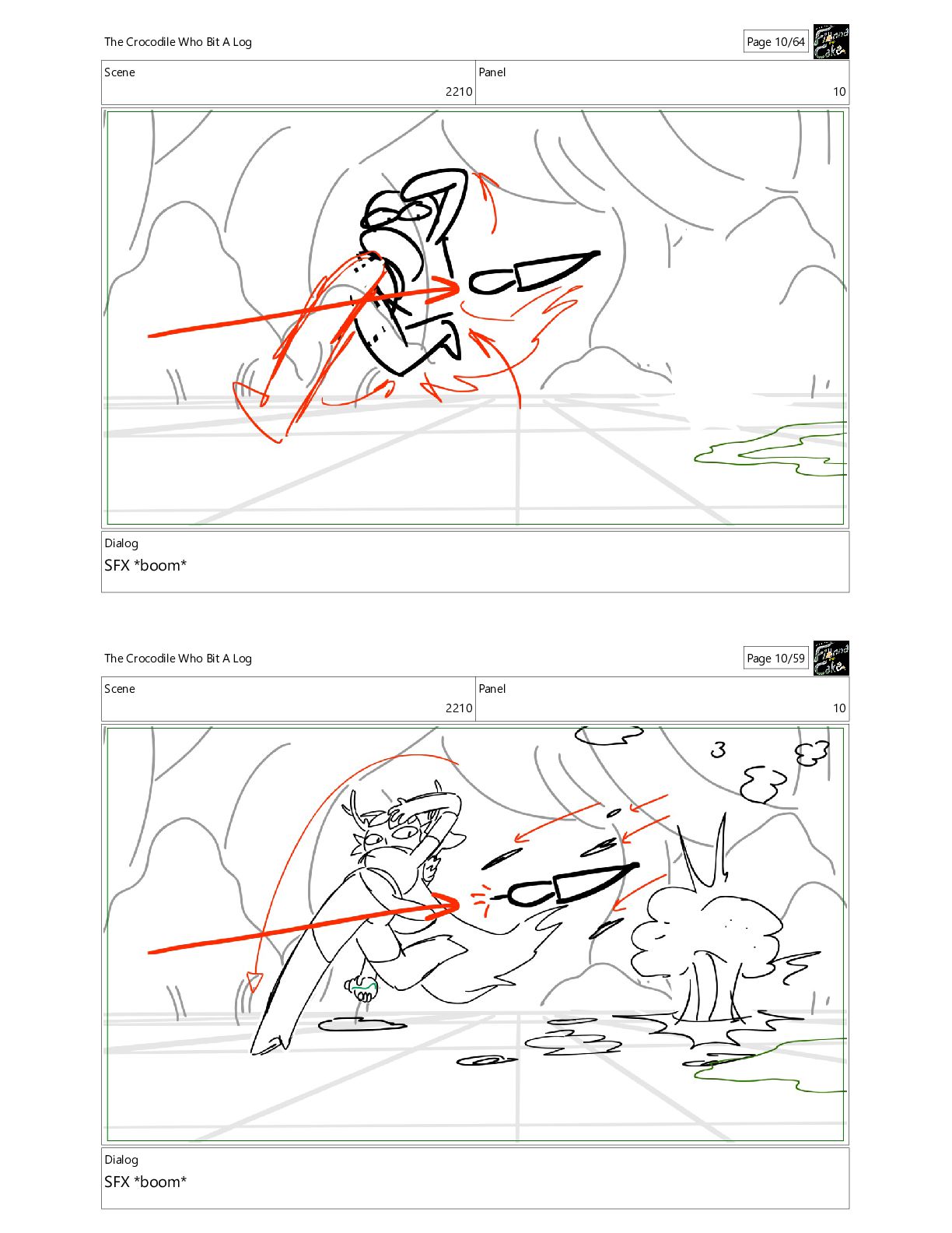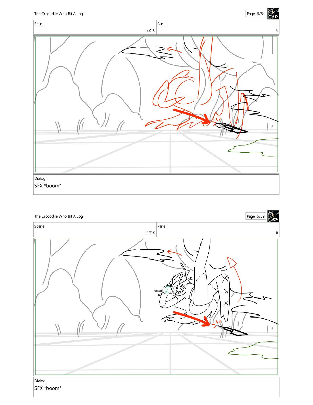 Bit A Log Page 10/64 Scene 2210 Panel 10 Dialog SFX *boom* The Crocodile Who Bit A Log Page 10/59