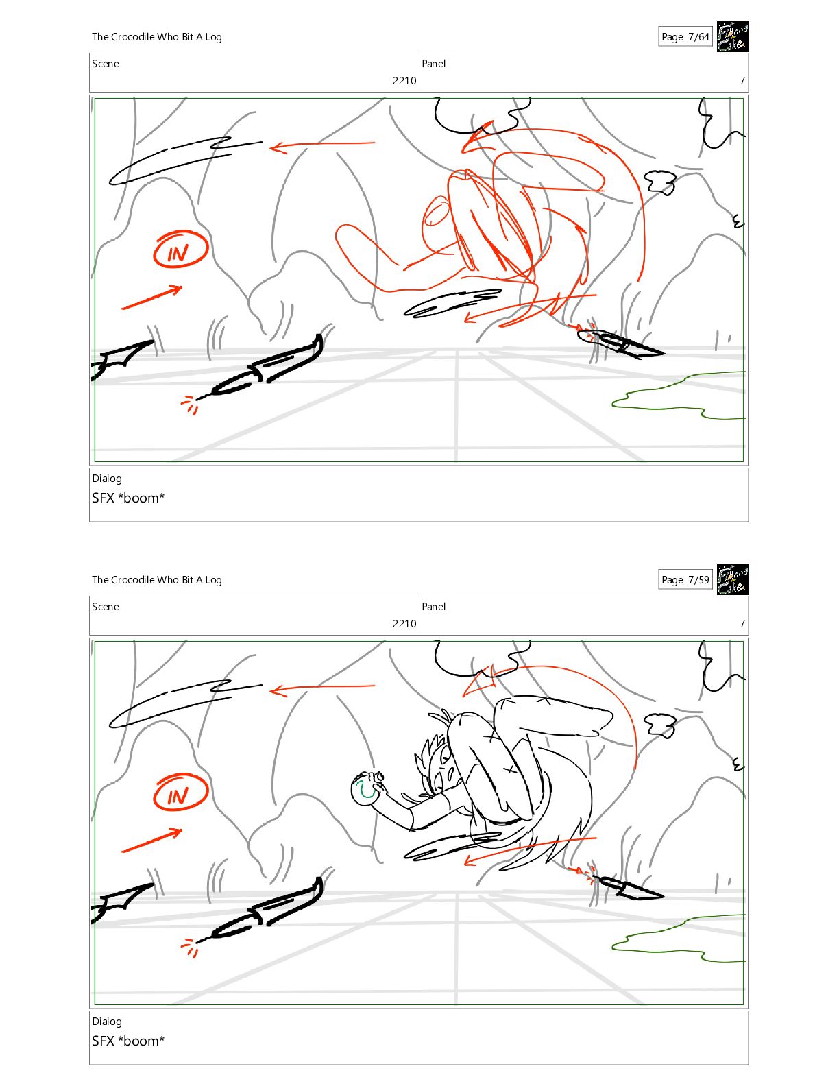 Bit A Log Page 7/64 Scene 2210 Panel 7 Dialog SFX *boom* The Crocodile Who Bit A Log Page 7/59