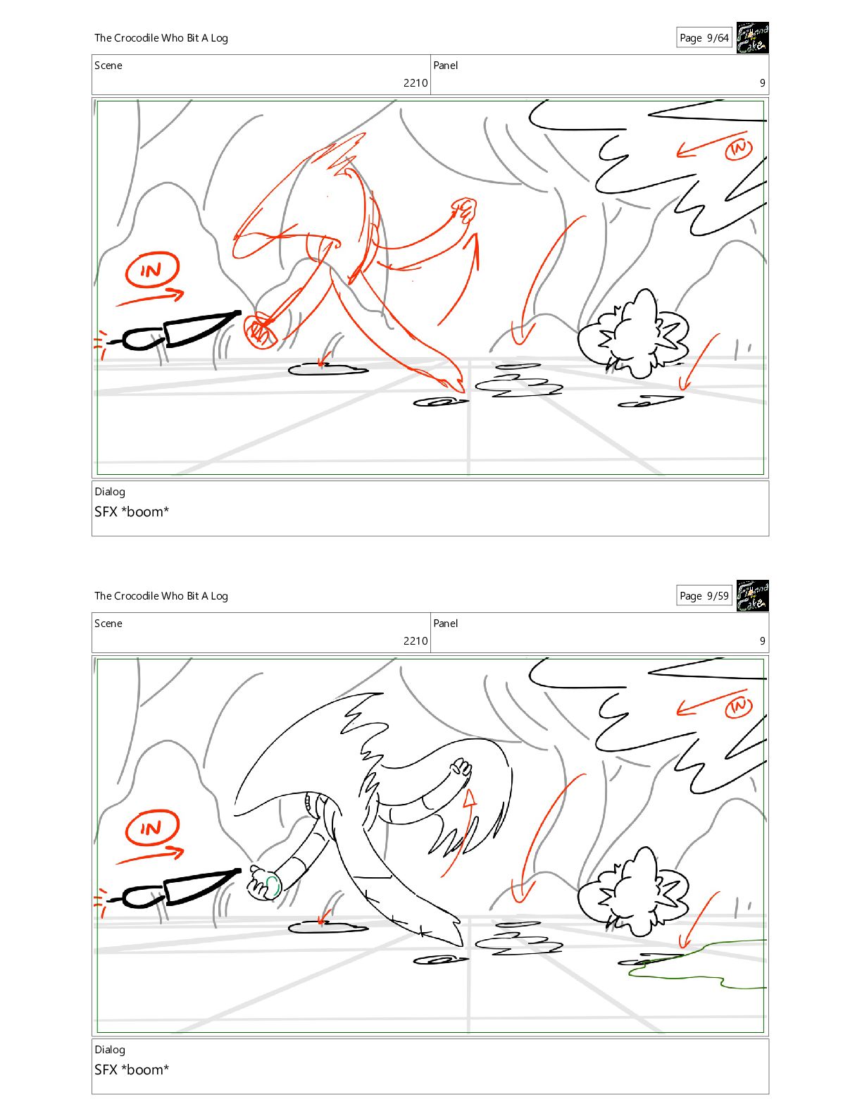 Bit A Log Page 9/64 Scene 2210 Panel 9 Dialog SFX *boom* The Crocodile Who Bit A Log Page 9/59